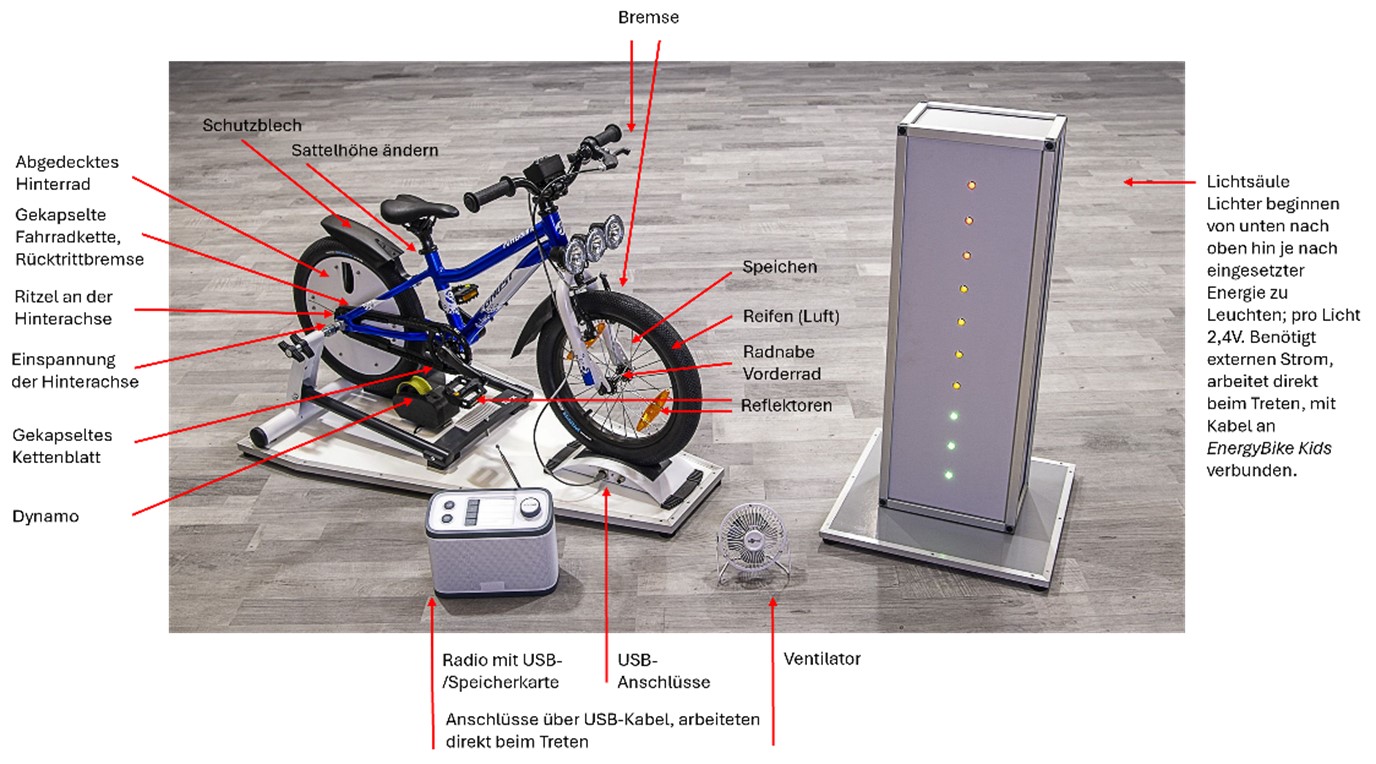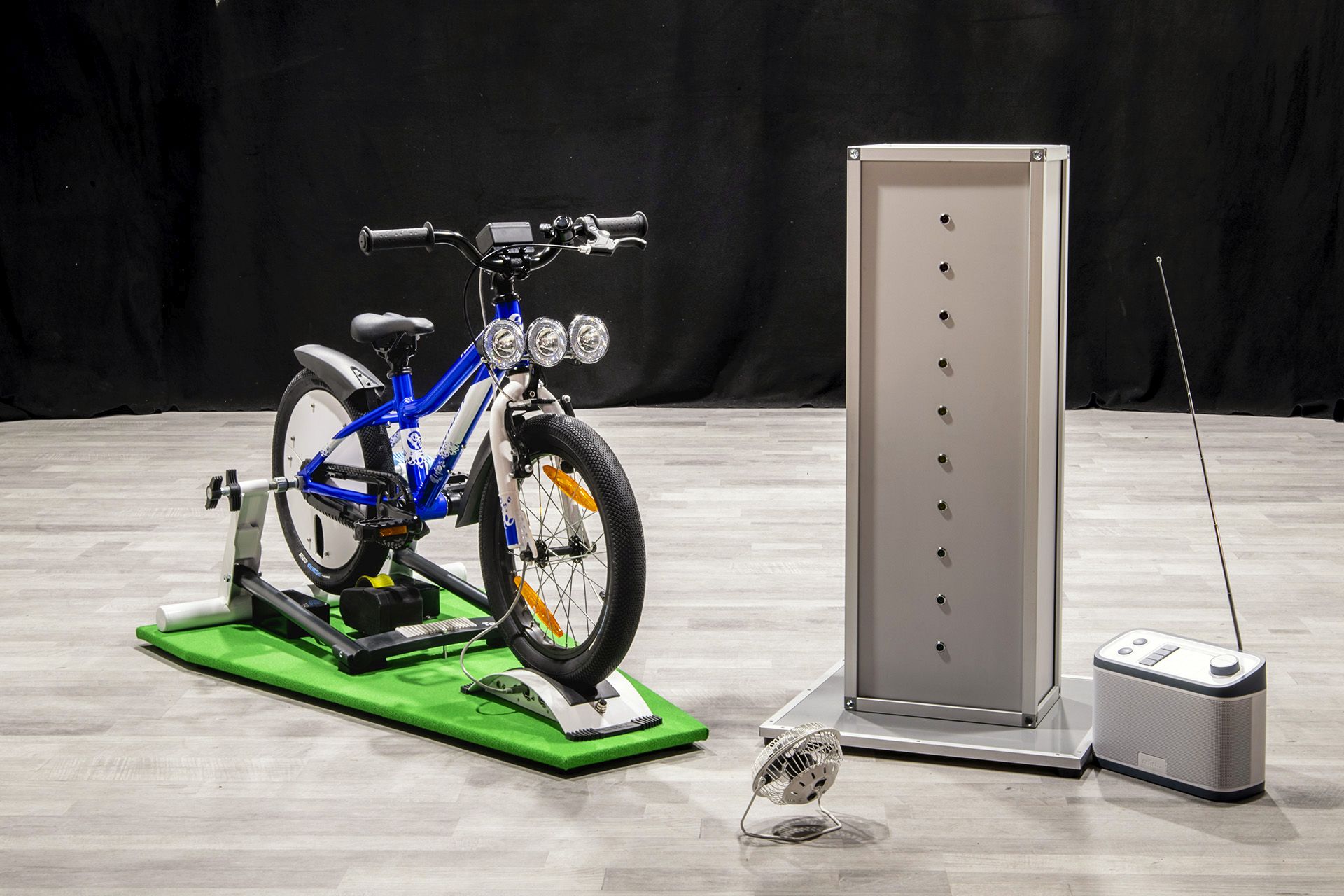 Endlich ist es soweit: das EnergyBike Kids für 4- bis 7jährige Kinder. Hier können auch die Jüngsten schon richtig gut Energie erzeugen und die Lampen zum Leuchten bringen und Radio, Ventilator oder andere Endgeräte aktivieren.