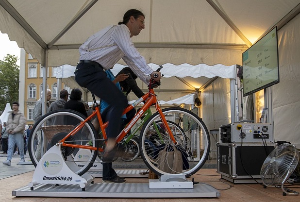 Aus der Spendenplattform Energie wird Natur ist das UmweltBike entstanden. Mit diesem stromerzeugenden Bike können ganze Videokonferenzen, Audiotechnik, Monitore, Laptops und damit auch Veranstaltungen mit selbst erzeugtem und damit grünem Strom betrieben werden. Natürlich gibt es viele weitere Einsatzmöglichkeiten, die sehr gut auch an Schulen, z. B. für den Unterricht, genutzt werden können. Mehr dazu auf unserer Projekthomepage www.umweltbike.de.